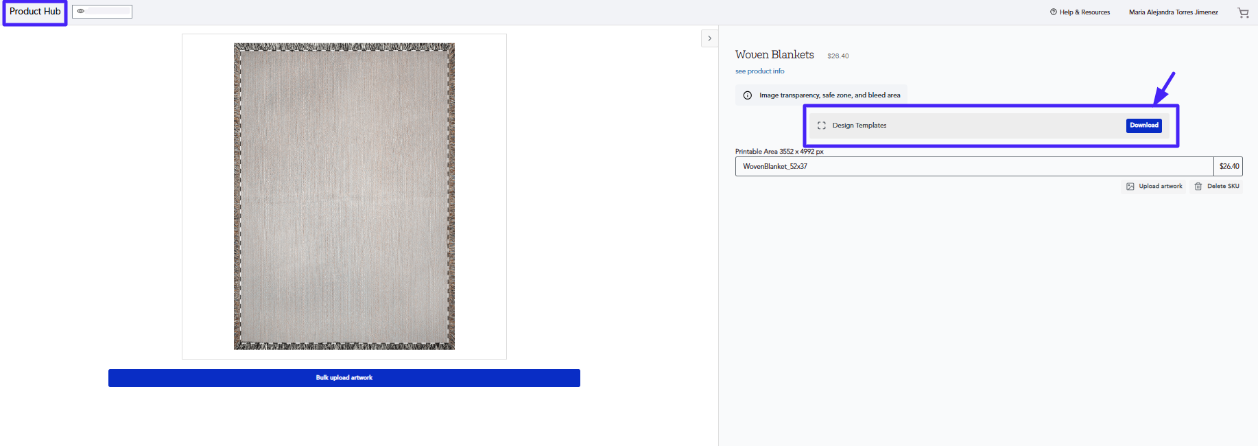 Or we also have the option to download Design Templates directly from within the Product Hub, which streamlines the artwork creation process: