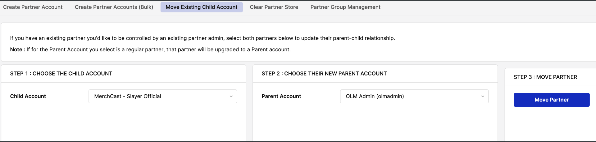 To check all partner accounts that are included in the OLM admin account, log in with the following partner credentials: